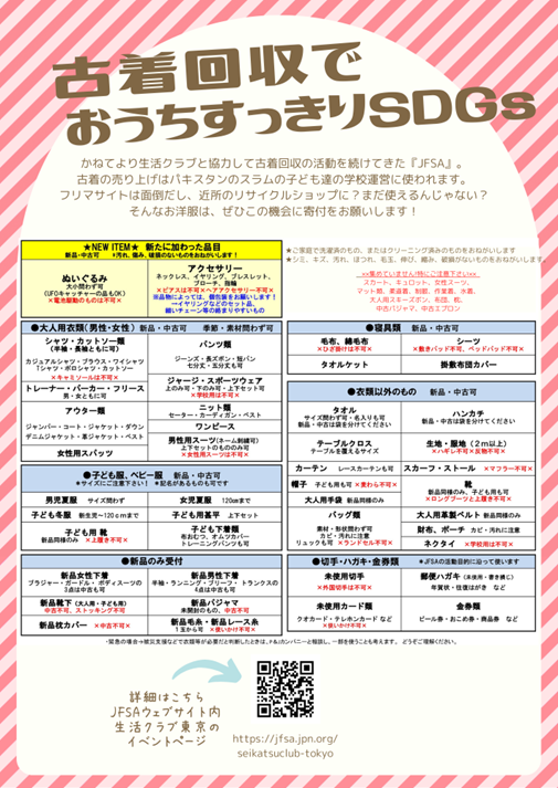 デポー17周年まつりにて、衣類・毛布・バッグなどを回収します。