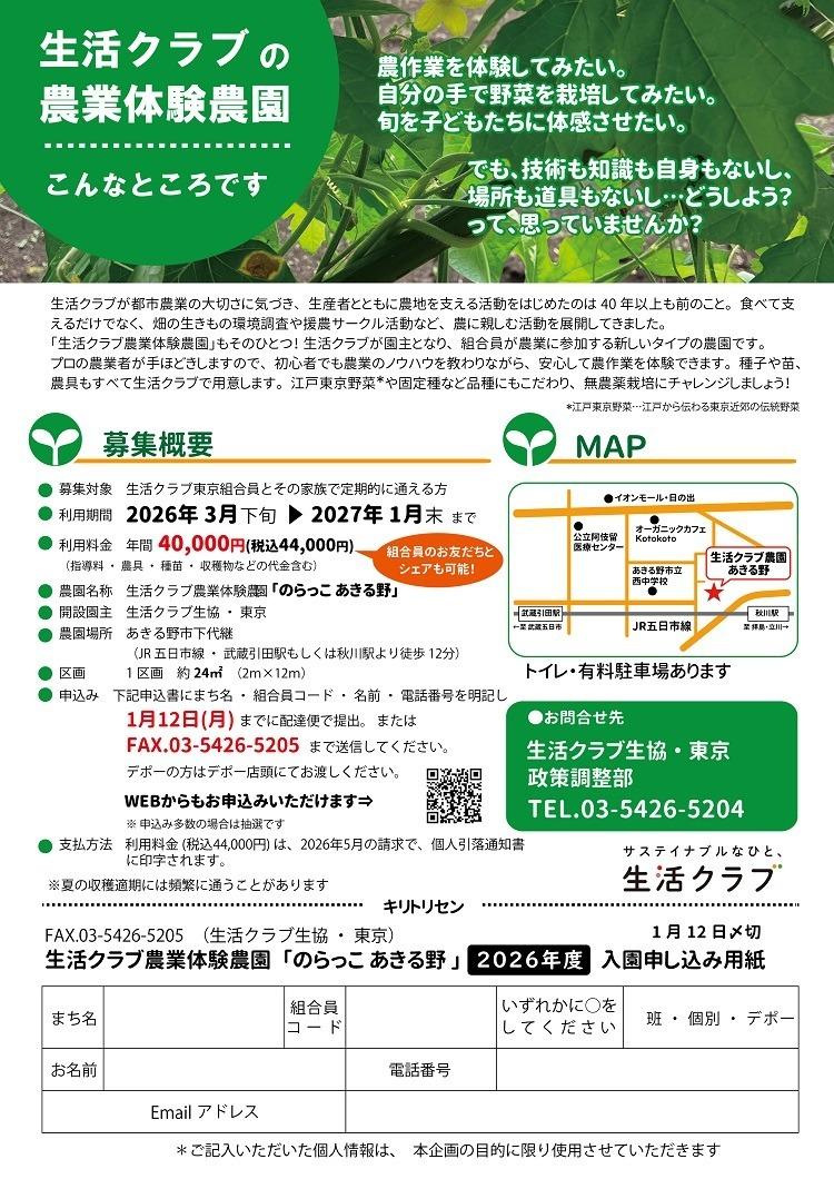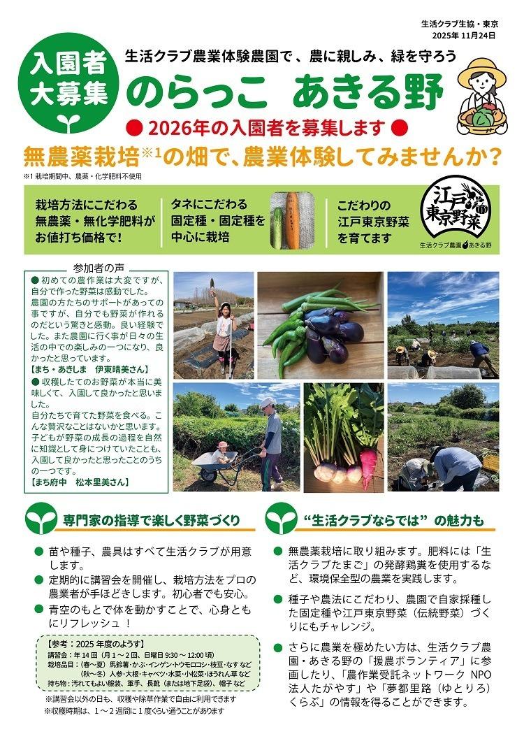 【生活クラブ農業体験農園】のらっこ あきる野 2026年度入園者募集