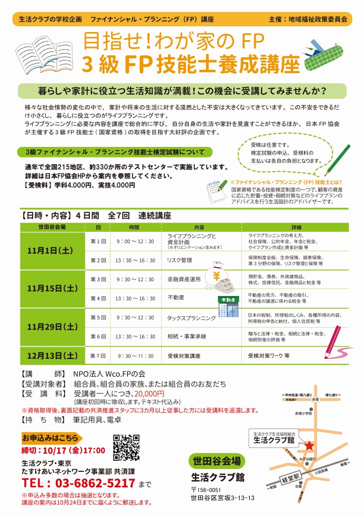 3級FP養成講座 <地域福祉政策委員会主催>