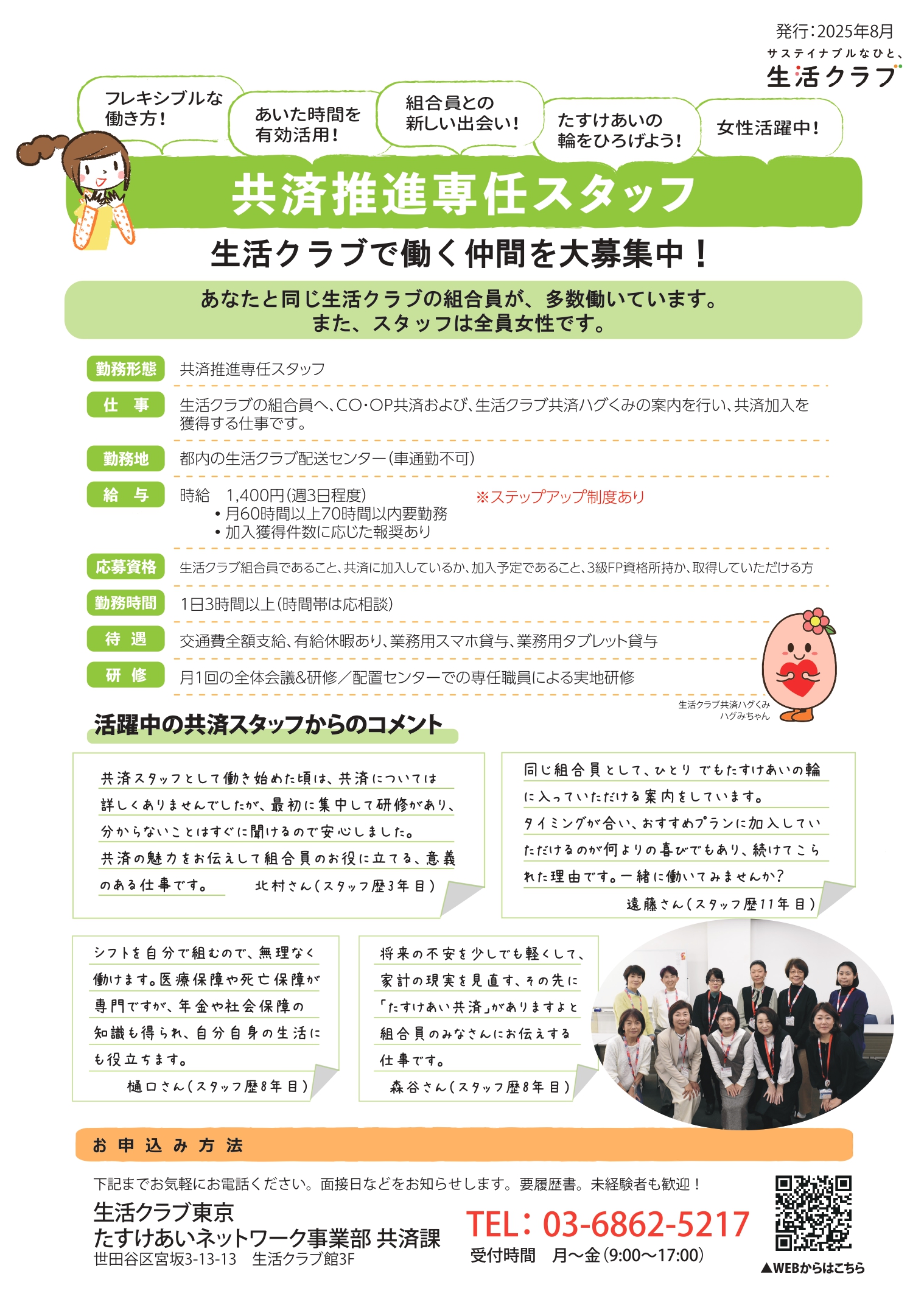 生活クラブで共済推進スタッフとして働いてみませんか?お気軽にご連絡ください。