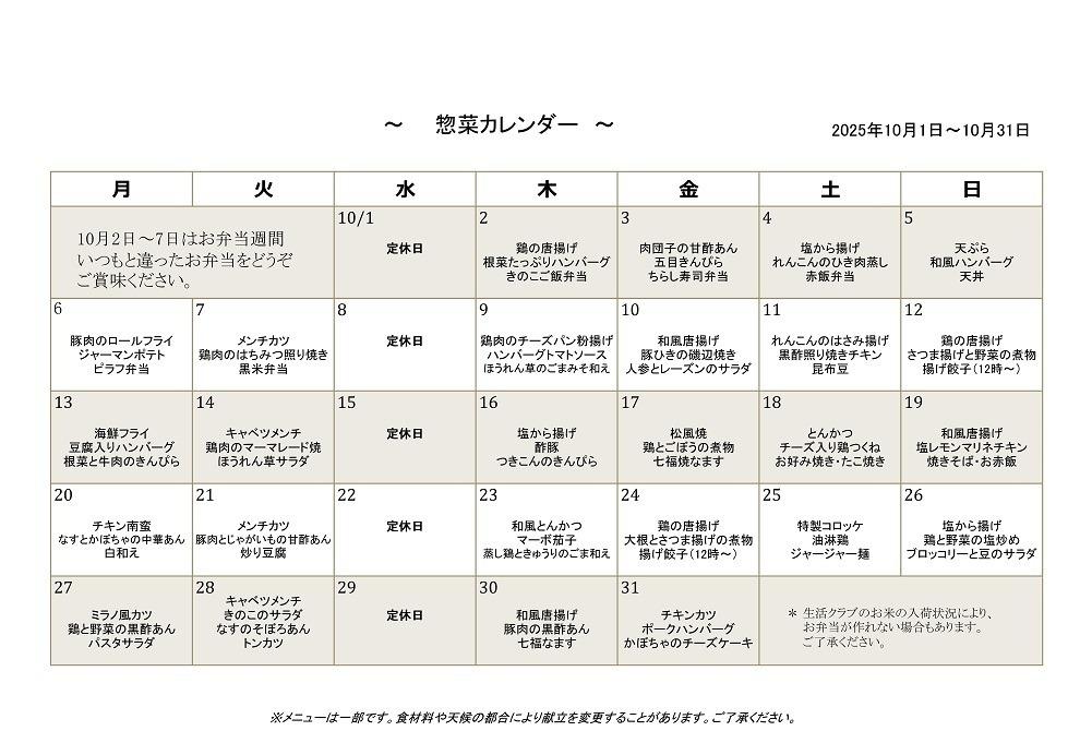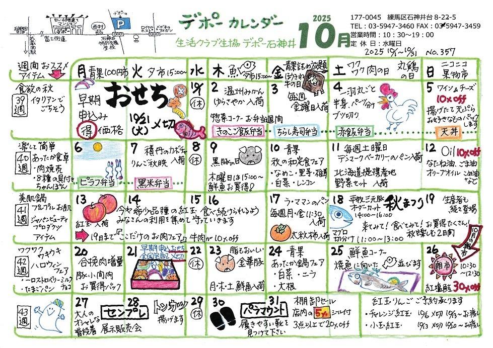 デポー石神井 10月カレンダー