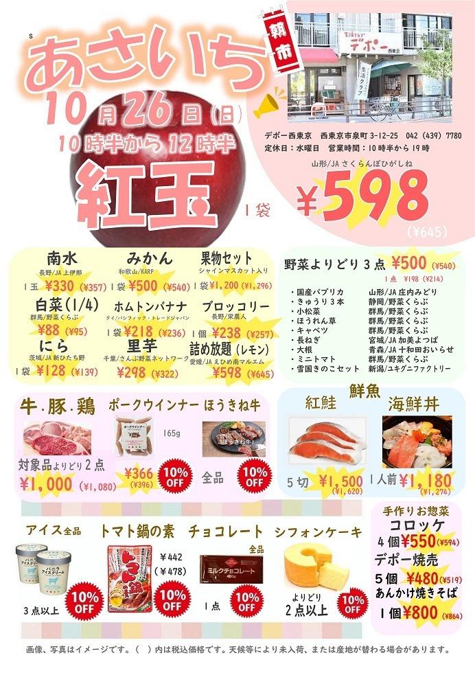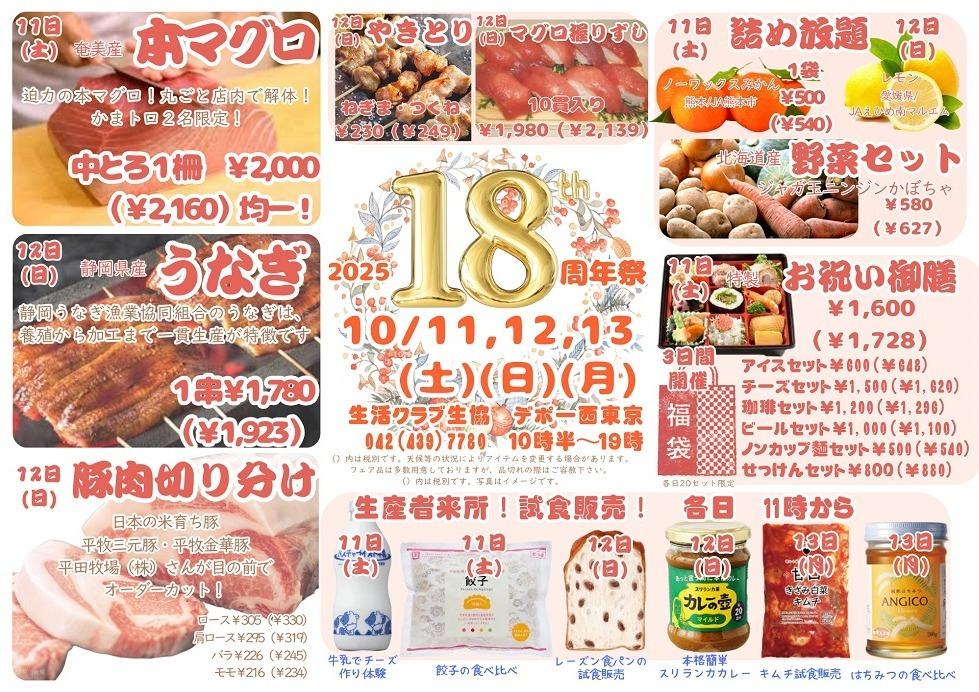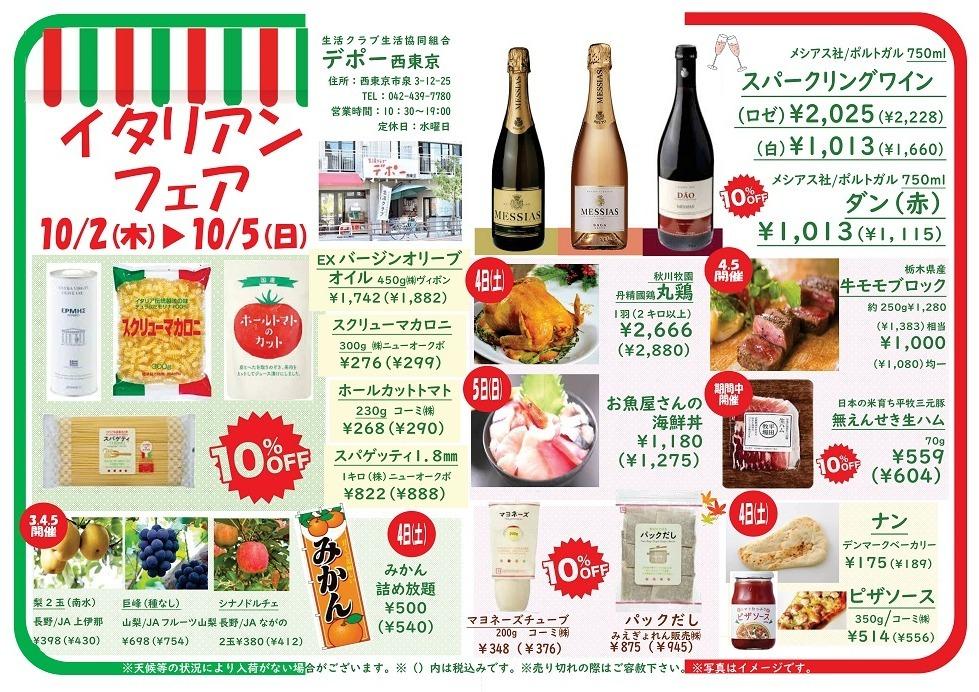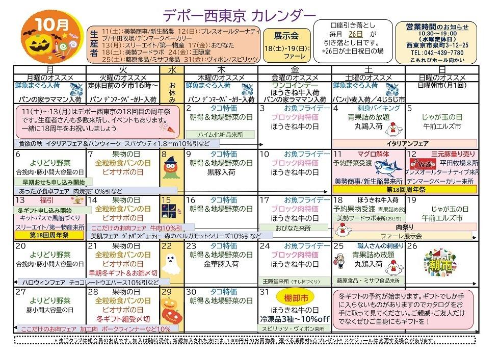 デポー西東京 10月カレンダー Tweet ▼10/26(日)「あさいち」のご案内です ▼10/17(金)~19(日) お肉祭りのご案内です ▼10/11(土)~13(月)18周年まつりのご案内です ▼10/2(木)~5(日) イタリアンフェアのご案内です。