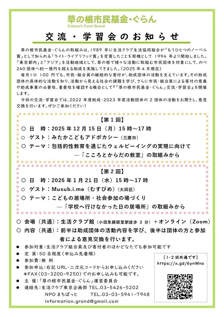 【12/15, 1/21】草の根市民基金・ぐらん 2025年度 交流・学習会