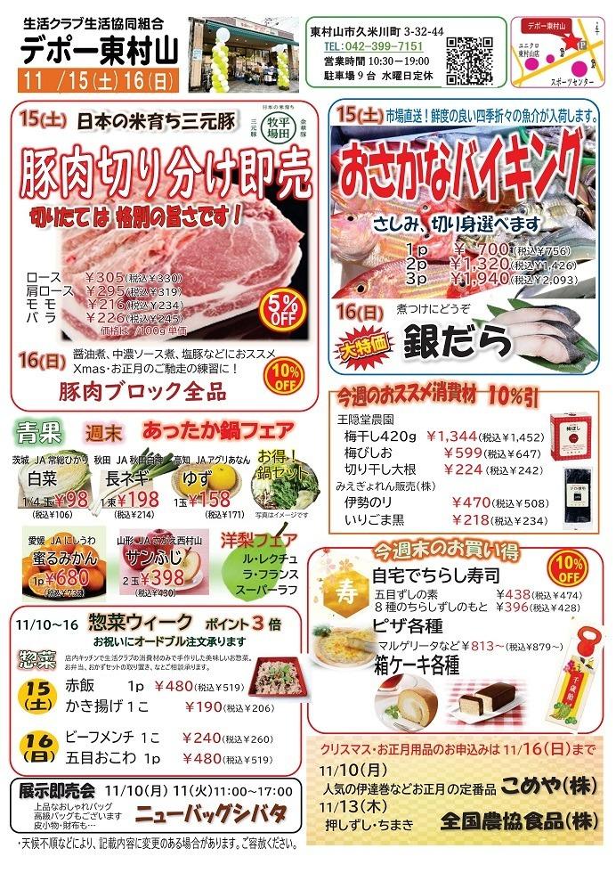 ▼11/15(土)~16(日) 豚肉切り分け即売・おさかなバイキング他のご案内です