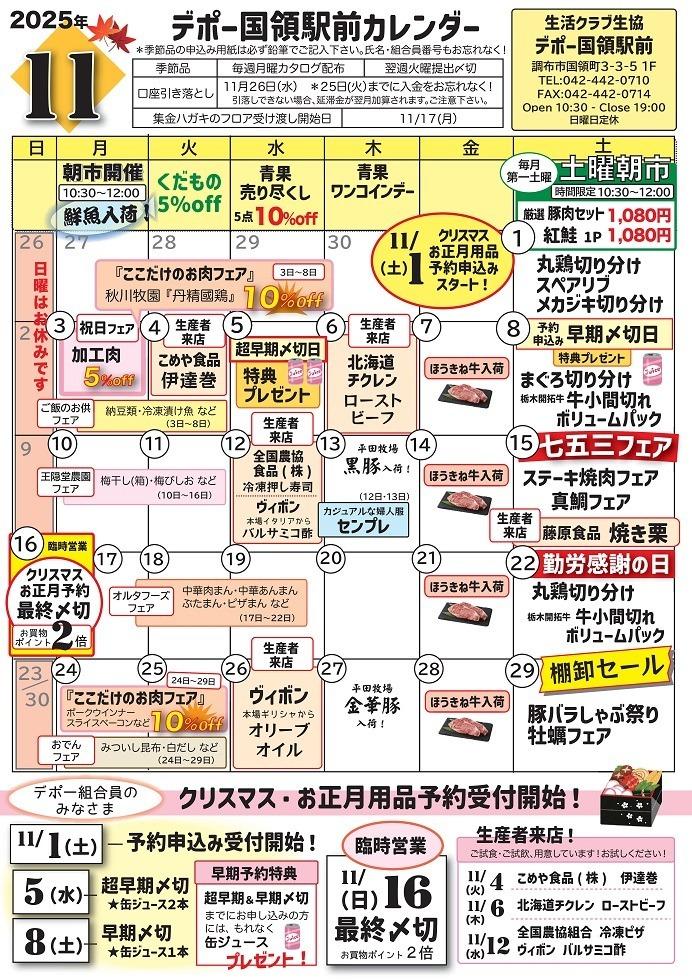デポー国領駅前 11月カレンダー