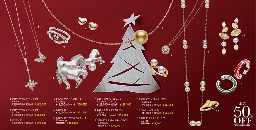 冬の特別な日、大切な人へのプレゼントとして贈りたいクリスマスジュエリー&アクセサリー。普段がんばっている自分へのご褒美にもぴったりのジュエリー。ネックレス、リング、ピアス、イヤリングなどをお手頃価格で多数取り揃えています。