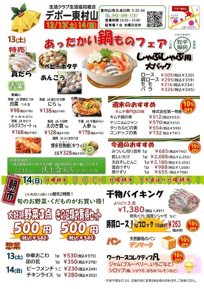▼12/13(土)~14(日) あったかい鍋ものフェアのご案内です