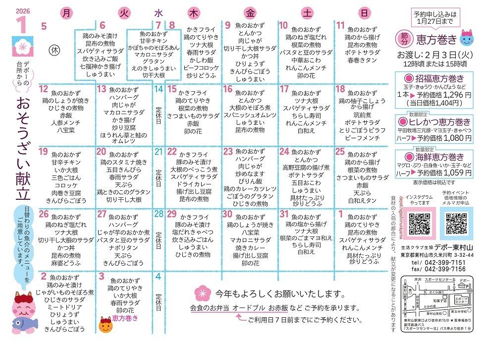 デポー東村山 1月カレンダー