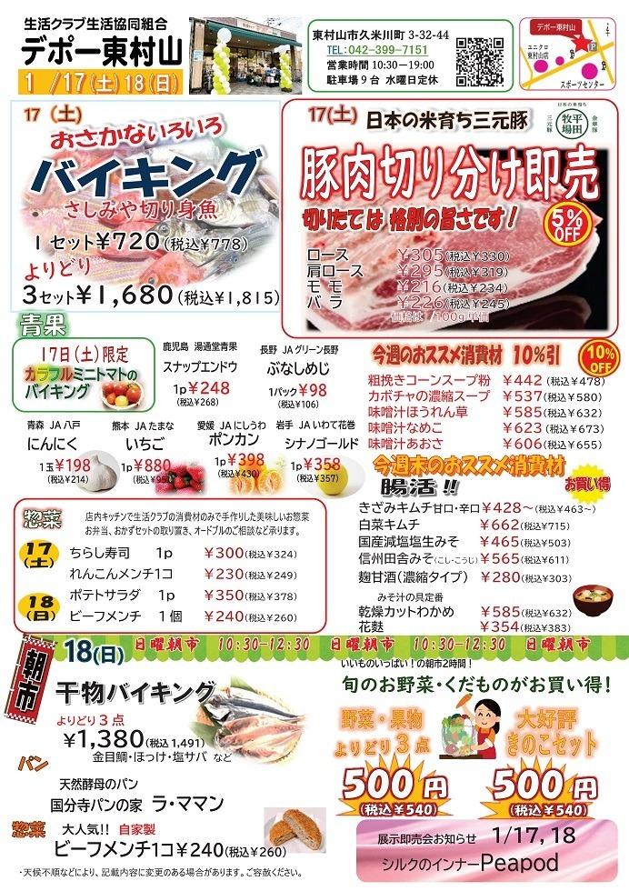 ▼1/17(土)~18(日) おさかなバイキング・豚肉切り分け即売他のご案内です