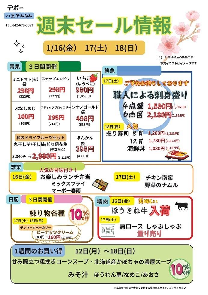 ▼1/16(金)~18(日) 週末セール情報のご案内です