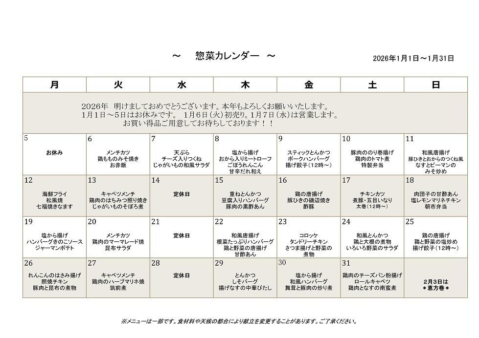 デポー石神井 1月カレンダー