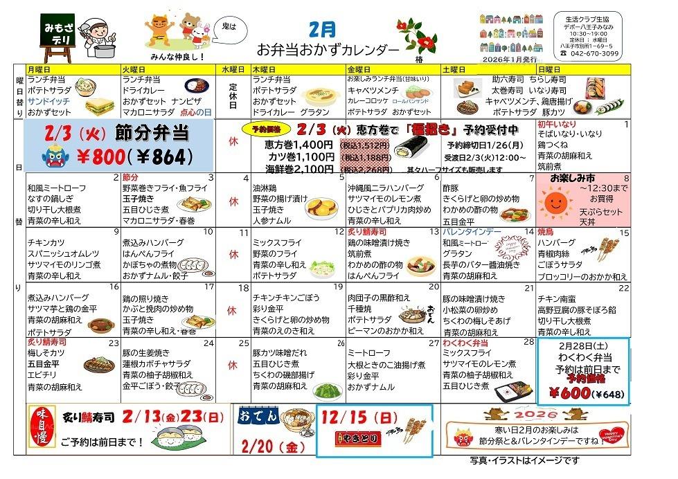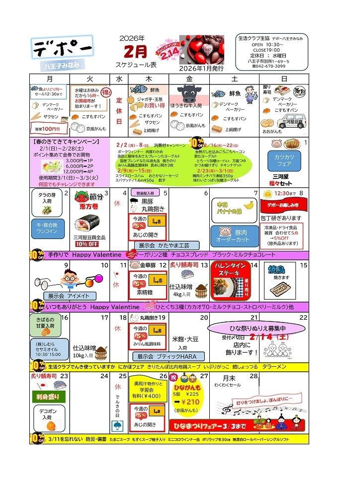 デポー八王子みなみ 2月カレンダー