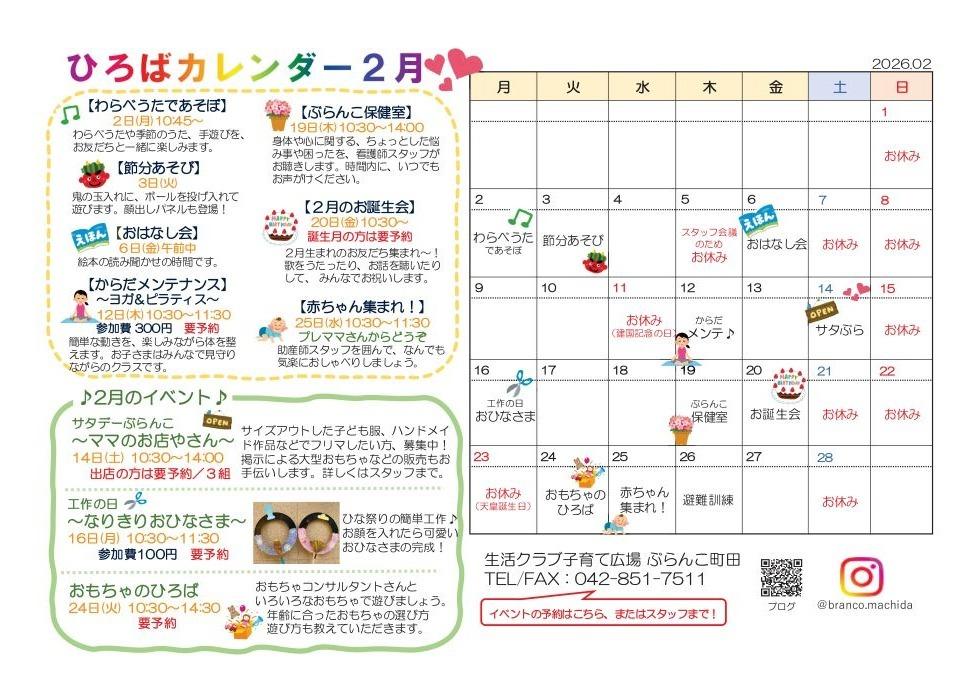 2月・ひろばカレンダー