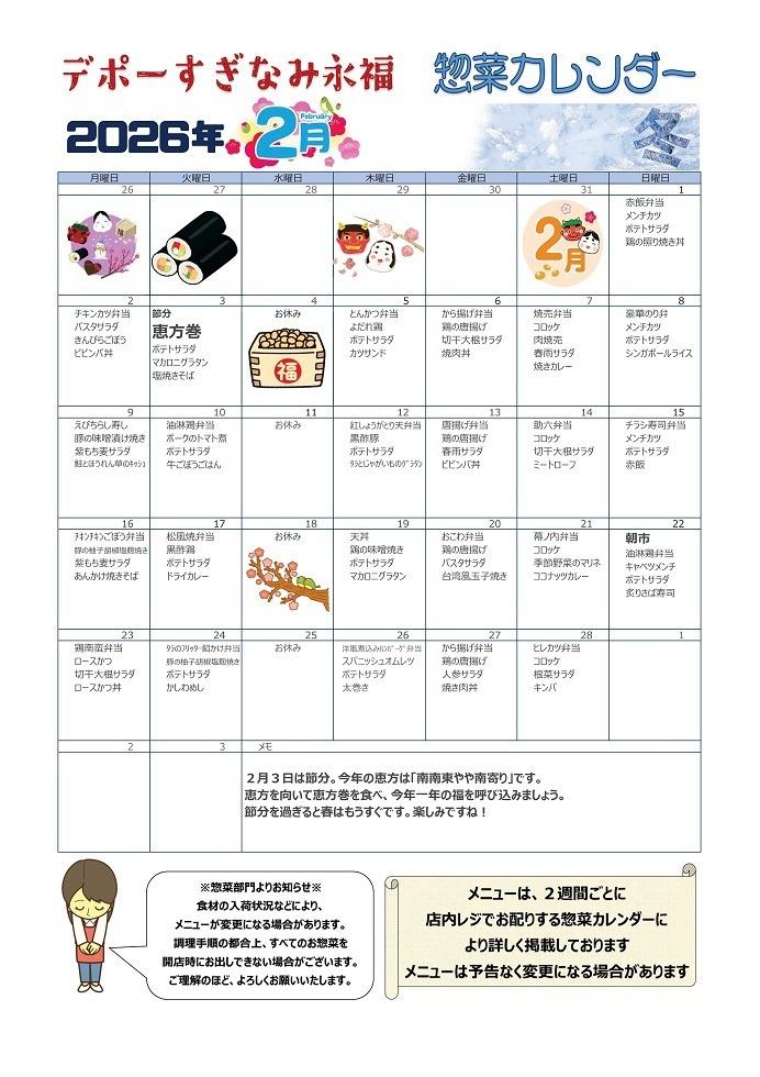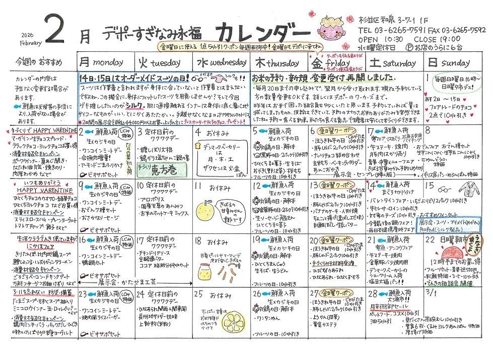 デポーすぎなみ永福 2月カレンダー