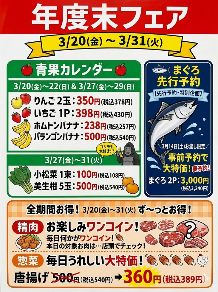 ▼3/20(金)~31(火) 年度末フェアを開催します!