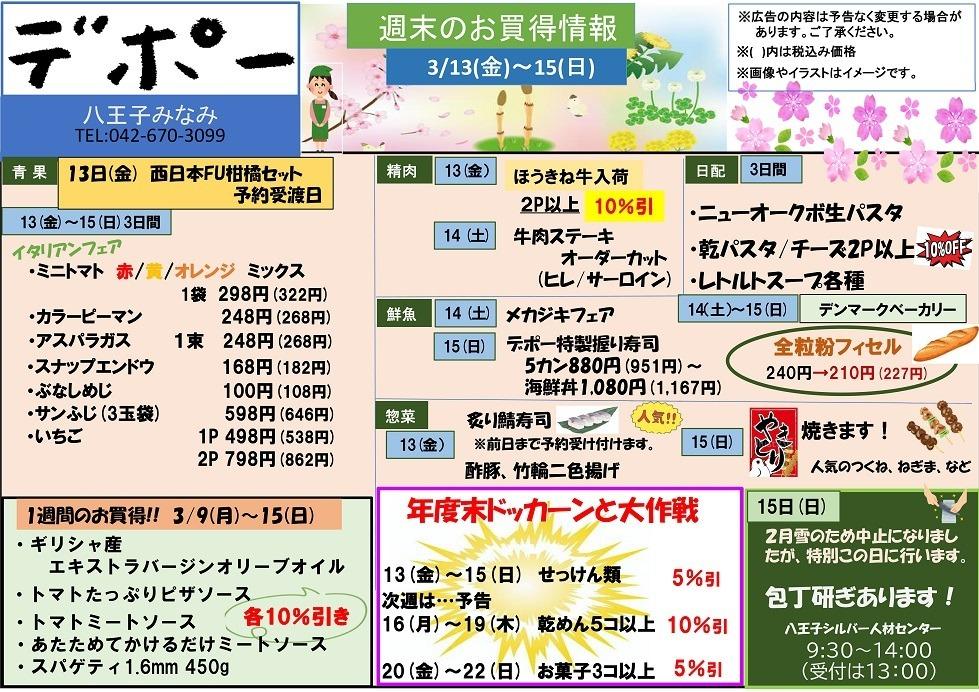 ▼3/13(金)~15(日) 週末のお買い得情報のご案内です