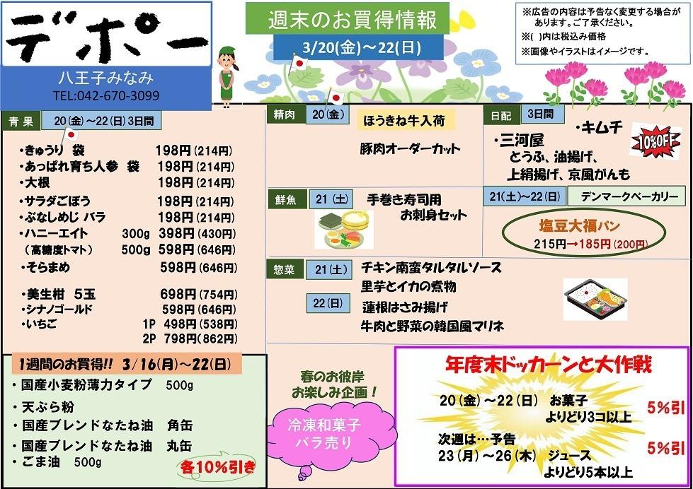 ▼3/20(金)~22(日) 週末のお買い得情報のご案内です