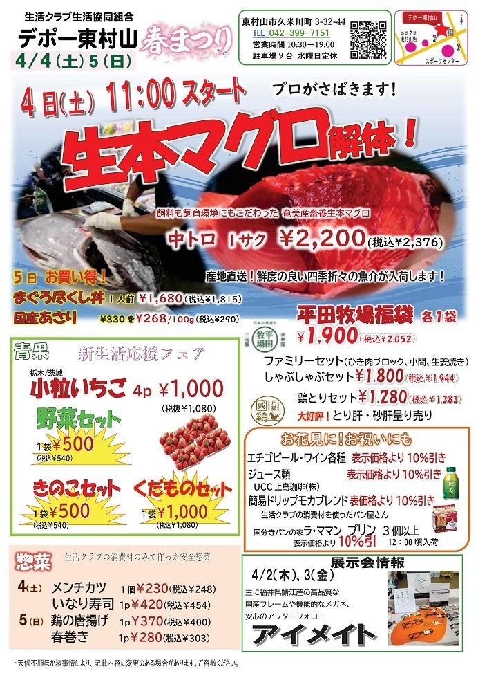 ▼4/4(土)~5(日) 春まつり 生本マグロ解体のご案内です!