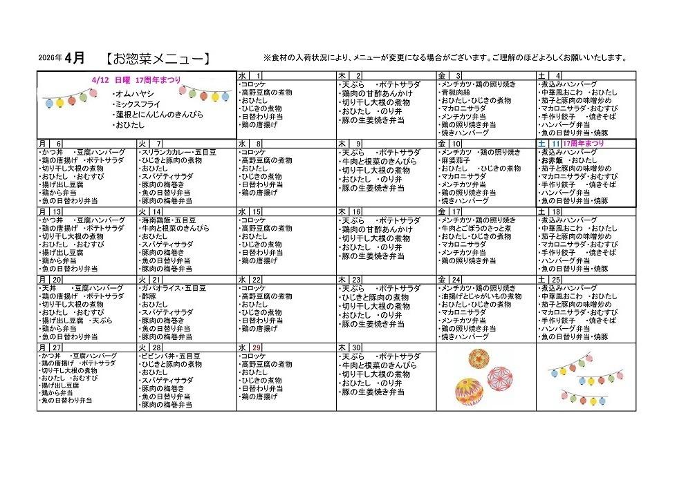 デポーせたがや 4月カレンダー