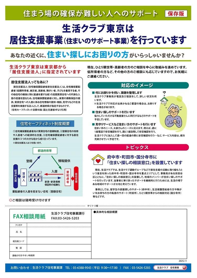 ●生活クラブ東京は東京都から「居住支援法人」に指定されています●