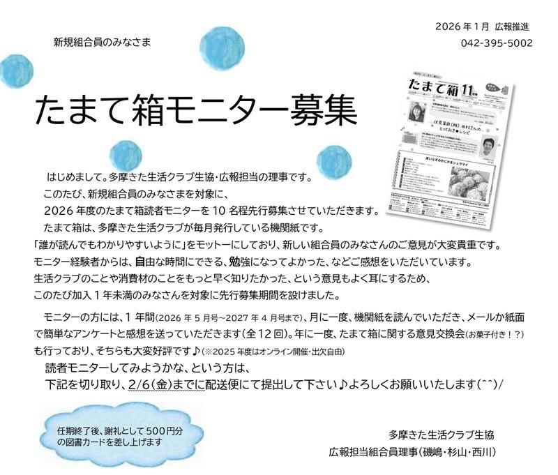 ※応募締め切り後、モニター登録のご案内をいたします。(3月中旬頃)